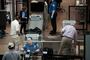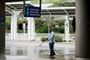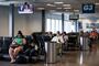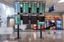 Inside the airport, more retail storefronts were closed and caged off than there were open. About half the food courts and restaurants were open — but their dining areas remained virtually empty, some with chairs and tables stacked in corners. Dine-in is allowed in the airport, but only if patrons are seated far apart.