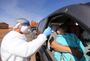 His mother, Tyana Phillips, tightened her embrace and leaned her face against the crying child’s head, as the woman — dressed head to toe in white and wearing a plastic shield over her masked face — leaned through the window to administer the COVID-19 test in the parking lot of the Utah Navajo Health System’s Monument Valley Clinic, just a few miles from where she lives with her parents.