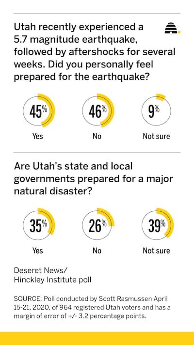 As to the slight majority of Utah residents who don’t think state and local governments are prepared for a natural disaster, Dougherty said that makes sense if people aren’t tracking what government response is in place.