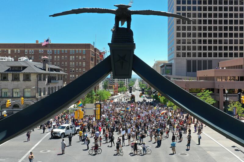 “This isn’t just a protest where you just get out here and we are going to be chanting,” Trey Barnes, with Solidarity for Justice, told the crowd. “We are going to be demanding change in Utah starting right here in Salt Lake City, right here in our capital. I need everyone here today. I need you to take action.”
