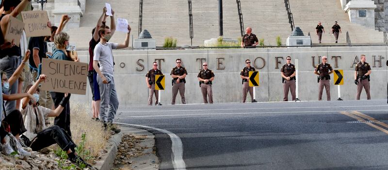 “We really want to see a change in our system because black people are still getting racially profiled,” said Powe, who led chants outside the Capitol. “African Americans are still being racially profiled, especially in Utah. I guess me and the crowd would love it if we could get treated equally.”