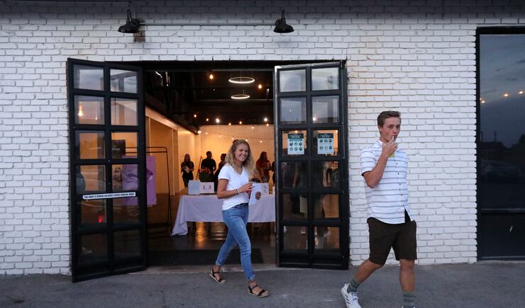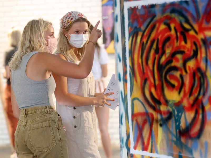 Several months after hearing the internships she’d applied to weren’t happening, Ballstaedt ushered people inside a well-lit building for an art show. Pieces lined the brick walls and patrons bustled about the bright space Friday and Saturday night.