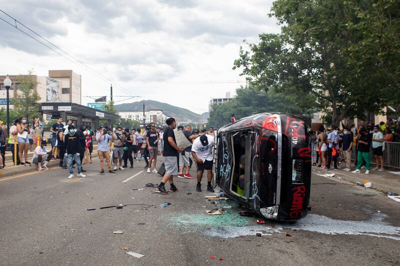 On May 30, as a Salt Lake police officer was responding to work, she was stopped by a large crowd of people protesting at 210 E. 400 South. The crowd surrounded the officer’s marked patrol car, and other officers had to rescue her out of the crowd and leave the vehicle.