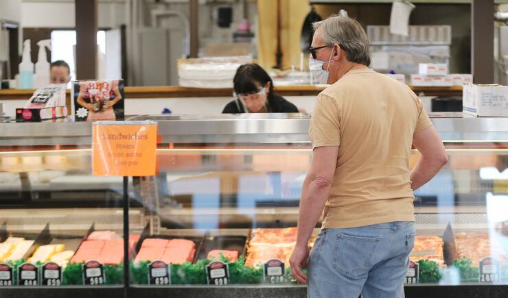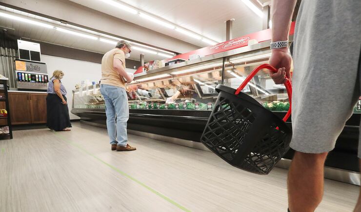 Current state guidelines for private businesses only require employees working with the general public to wear masks. But Jake Wilson, general manager of Snider Bros. Meats, says his store requires all customers to wear a mask while shopping to protect his employees and the other customers.