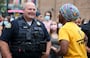 She acknowledged joy in seeing a block filled with allies. Hundreds spilled into a parking lot across the street from the front steps of the police building. Some sat on top of trucks in the back on the overcast, warm summer night.