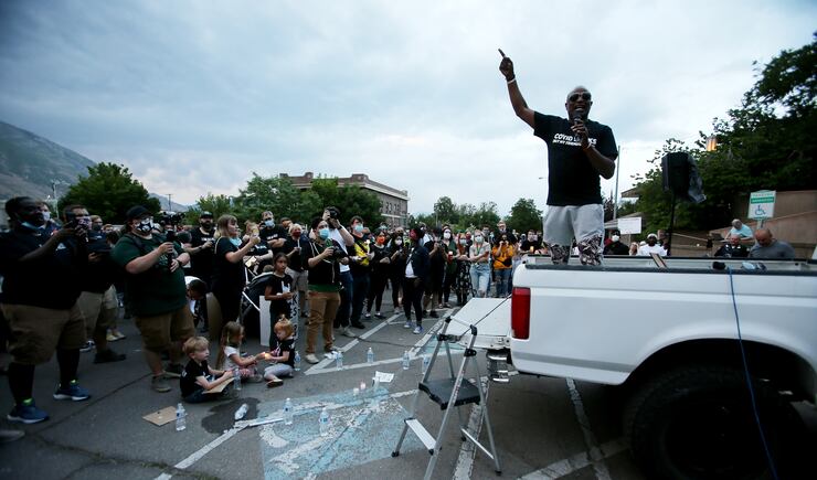 Black community leaders met Monday with Provo Police Department officials. On Tuesday, dozens of passersby stopped to join the ranks of a peaceful honk-and-wave protest near the University Place Mall on the corner of State Street and University Parkway in Orem.