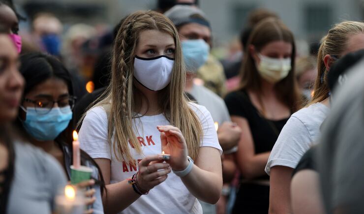 Blacks account for 0.8% of Utah County’s population. Multiple races were represented Friday night, but the vigil was largely white. The organizers encouraged social distancing and handed out masks and had volunteers walk through the crowd to squirt hand sanitizer on the hands of those who wanted it.