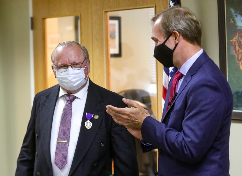 “I brought in all my records and they said they checked and there was nothing they could do about it,” he explained at the district office of U.S. Rep. Ben McAdams, D-Utah. “We went to the Purple Heart Association and they basically just kept coming up with excuses (as to) why they couldn’t do anything.”