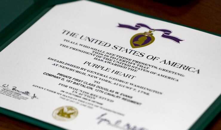 Evans was hospitalized for a time where he was informed that he would be awarded a Purple Heart. The medal is a combat decoration that is awarded to members of the U.S. Armed Forces who are wounded in battle at the hands of the enemy.