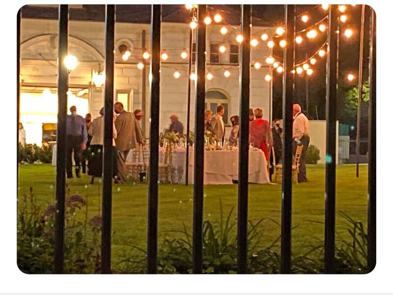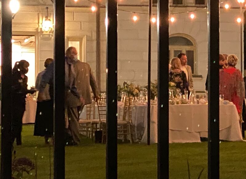 The couple said each caterer and officer providing security seemed to have face coverings; neither spotted the governor.