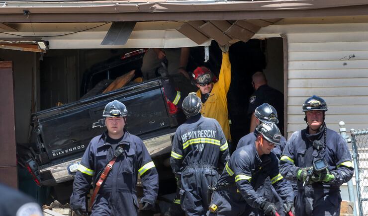 The truck was traveling at high speed when it crashed into the home where three children were inside, police say. A passerby pulled two of the children out of the home, but a 10-year-old boy was pinned beneath the truck and could not be removed at the time.