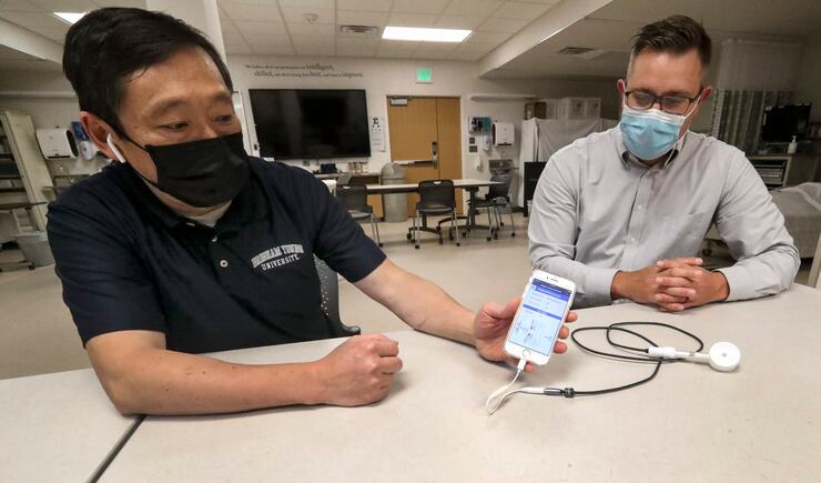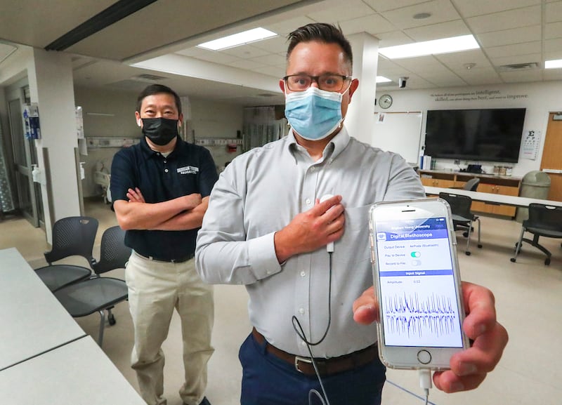 PROVO — Two BYU professors have designed a Bluetooth stethoscope that lets health care workers listen to a patient’s heart and lungs from a distance — allowing them to wear personal protective equipment and stay safe while assessing someone who may have COVID-19.