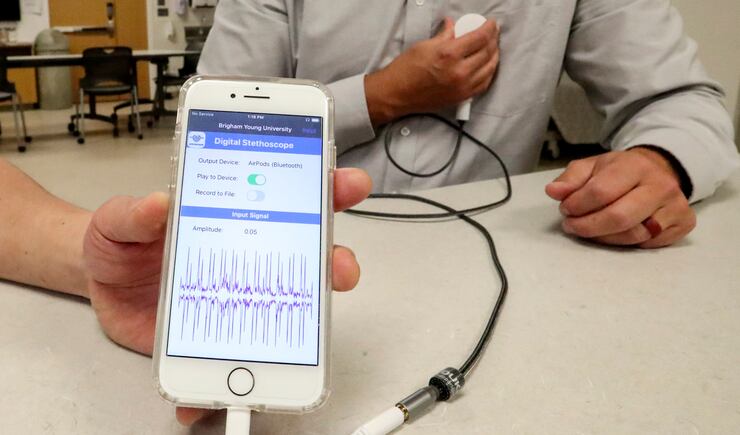 That’s when Nuttall thought about adding a Bluetooth element to a digital 3D-printed stethoscope design that he was already working on with BYU information technology professor Chia-Chi Teng for a different project that had been interrupted by COVID-19.
