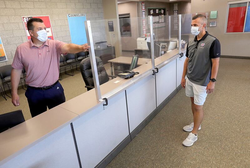 Work is underway in many school districts to install acrylic barriers in classrooms and other employees’ work spaces.