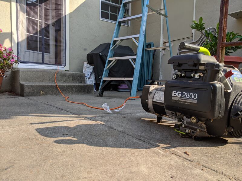 “PG&E said a bird hit a power line and knocked out power to 2,500 people,” Derek told me Saturday morning on a call. “So I ended up firing up the generator that I borrowed from Ernie and plugged in the WIFI router.“