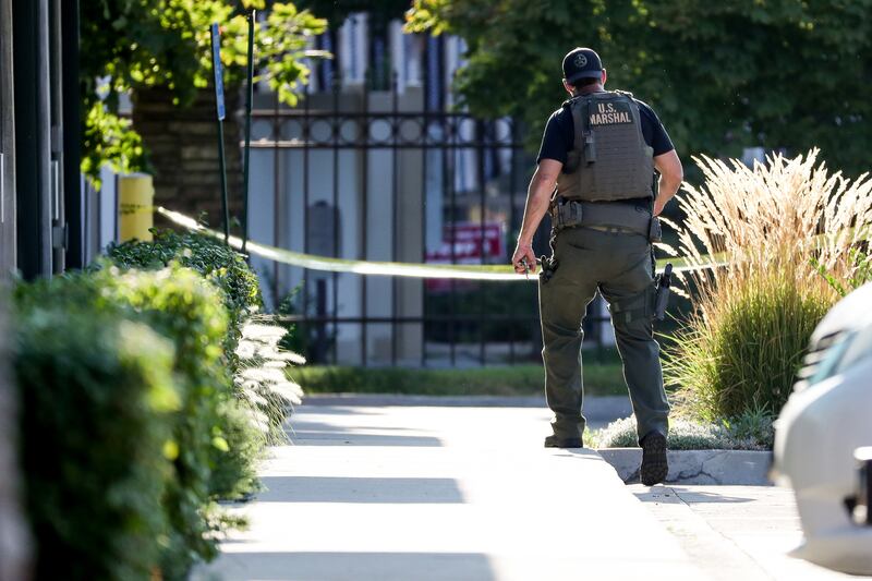“Officers began to pursue in vehicles and on foot and deployed the use of a K-9 to stop the suspect. As officers closed in, the subject pulled a firearm, and officers returned fire and hit the suspect,” the Marshals Service said in the statement.