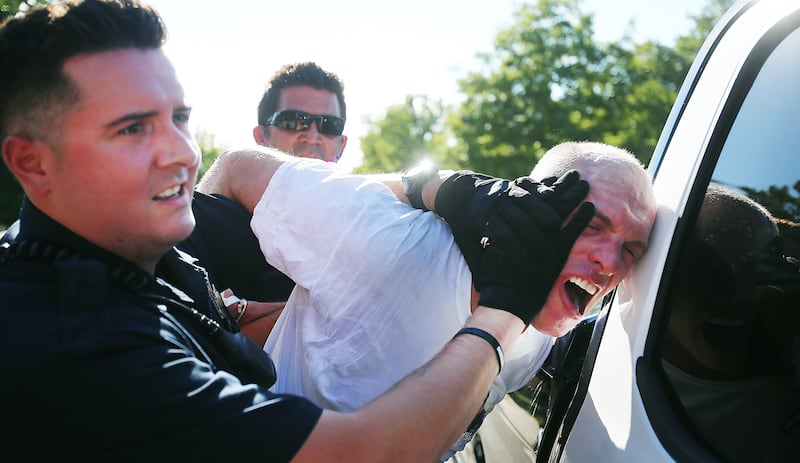 Later, police spotted Pecoraro in the crowd and attempted to arrest him again. He is accused of then putting a second officer, Unified police officer Austin Stirland, in a chokehold.