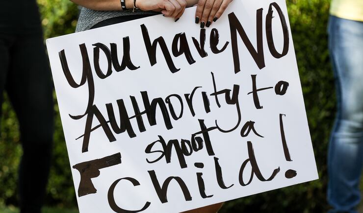 During the rally, a few carried signs with slogans such as: “You have no authority to shoot a child,” “Crisis management not cops,” “Justice for Linden Cameron, we stand with you.”