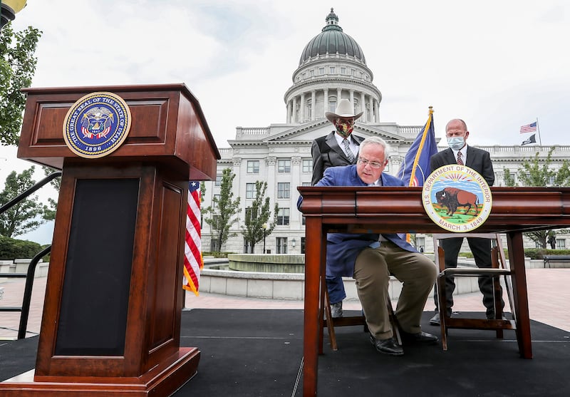 The signing ceremony at the state Capitol was attended by Lee as well as Gov. Gary Herbert.