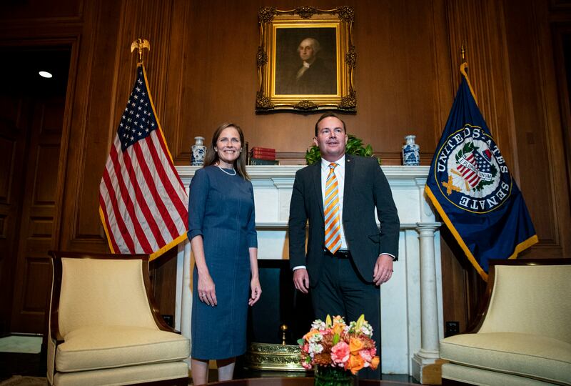 Lee, a member of the Senate Judiciary Committee, described his meeting with Barrett as “fantastic.” He said they talked about the confirmation process, how the hearings would go, legal “nuts and bolts,” and how her children are doing. Barrett is the mother of seven.