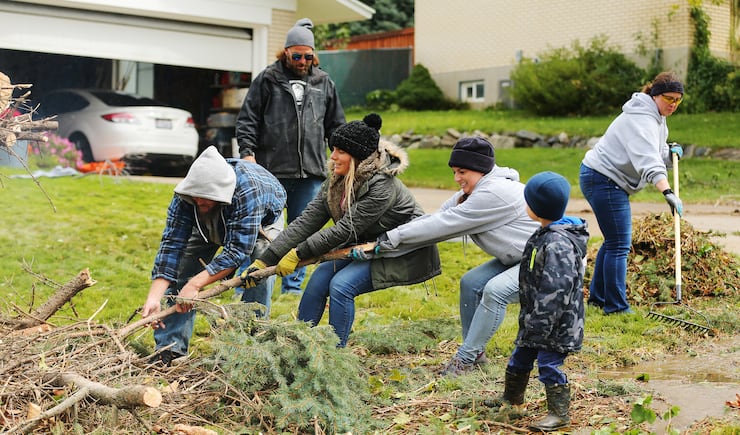 Her neighbor’s trampoline flipped over their fence and a large tree was blown over into the entry of their daughter’s basement apartment.