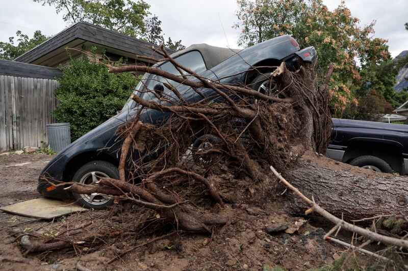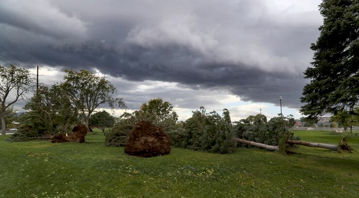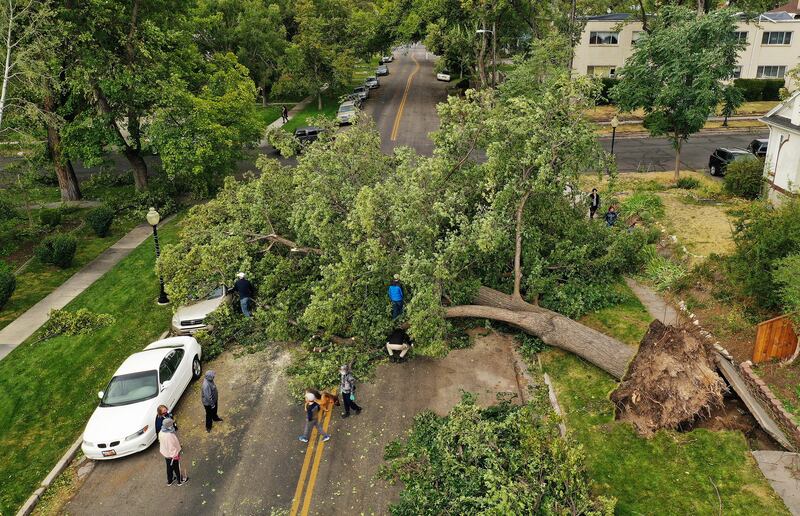 Trees fell onto homes, businesses and vehicles, with some rupturing gas and water lines when they were uprooted, Cox said. Some of those ruptured lines flooded basements. The damage at trailer parks in Davis County was particularly bad.