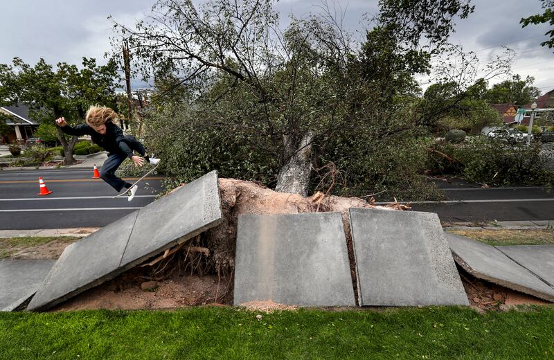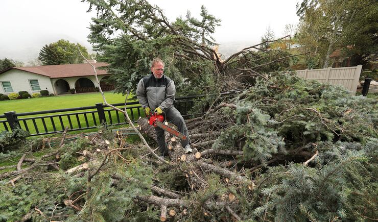 Lt. Gov. Spencer Cox was also out surveying damage across northern Utah. He said thousands of trees were down across the state, and a record 45 semitrailers had been blown over on Utah highways.