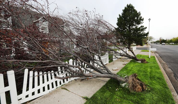 Salt Lake City urged residents to report fallen trees and other wind damage online at slc.gov/wind-damage-faqs, but Mendenhall said Tuesday the city was not yet prepared for people to “haul their branches or debris out into the road for pickup.” She said city officials will let residents know when they have the capacity.