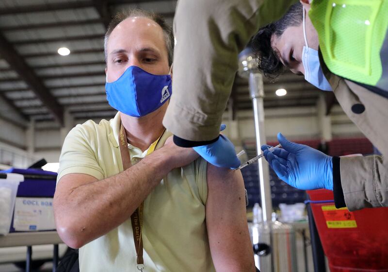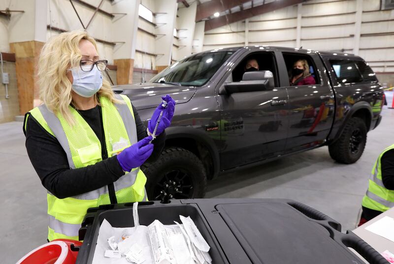 In Farmington, Davis School District employees lined up in their cars at a daylong, drive-thru vaccination clinic at the Legacy Events Center. For Bountiful High School sophomore English teacher Chera Fernelius, the opportunity to get a shot “felt like a nod of respect to educators that we don’t feel like we’ve had for a while.”