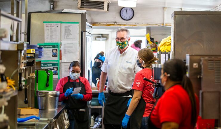 “Our longest, most loyal employee ever,” said Mark Hale, who with his brother Jon co-owns the Hires/Litzas restaurant group that was started when their father, Don, opened Hires in 1959 and Litzas in 1965. “Everybody knows Jim. He’s got that cheerful personality, he’s tall, with a big voice, and a really gentle spirit. Everybody loves him.”