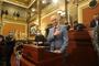 Some lawmakers listened remotely, so the House chamber was nowhere near as crowded as it has been for past years’ speeches, when both senators and representatives packed into the same chamber.