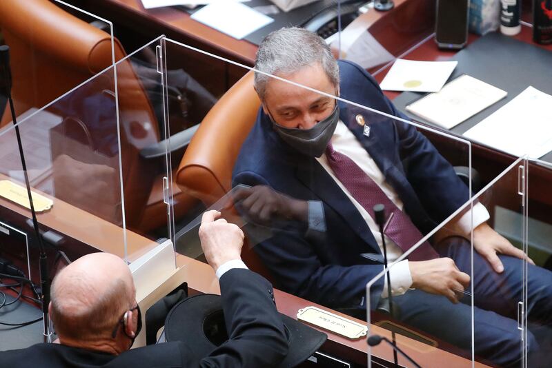 Lawmakers are working under COVID-19 restrictions that include a mask requirement, a handshake ban and required weekly testing for the novel coronavirus. Nevertheless, at least three people — none of them lawmakers — tested positive for the virus, it was learned Friday.