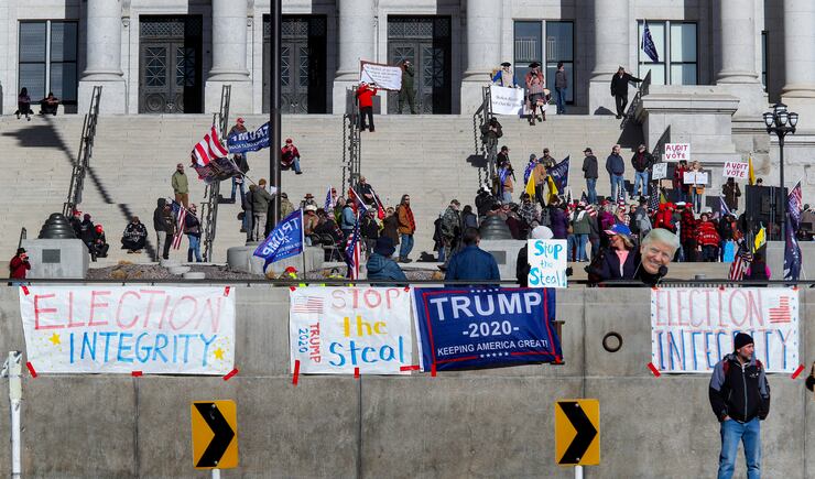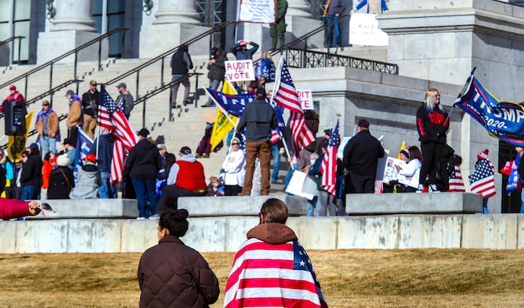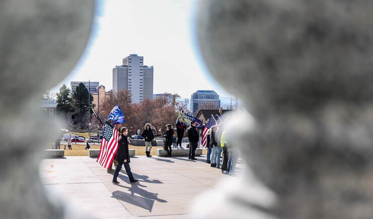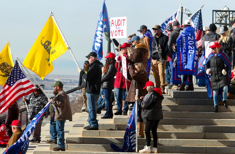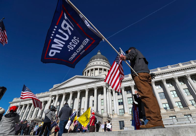 SALT LAKE CITY — Flag-waving demonstrators gathered at Utah’s state Capitol Wednesday afternoon to protest Congress accepting the results of the Electoral College votes.