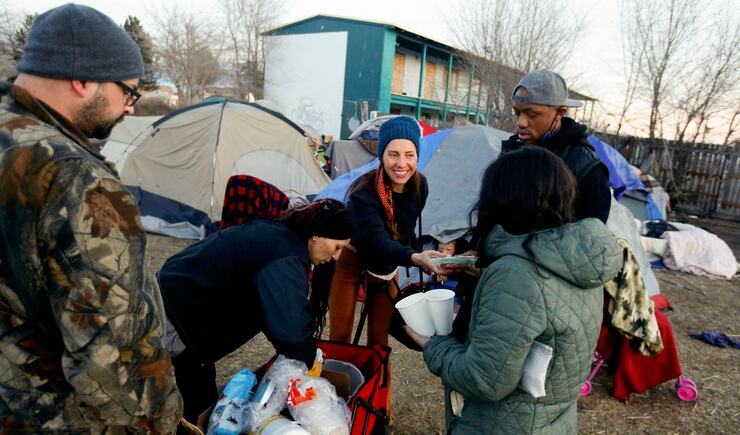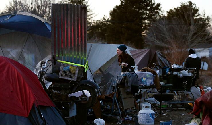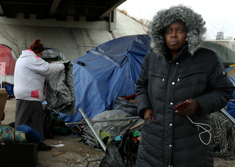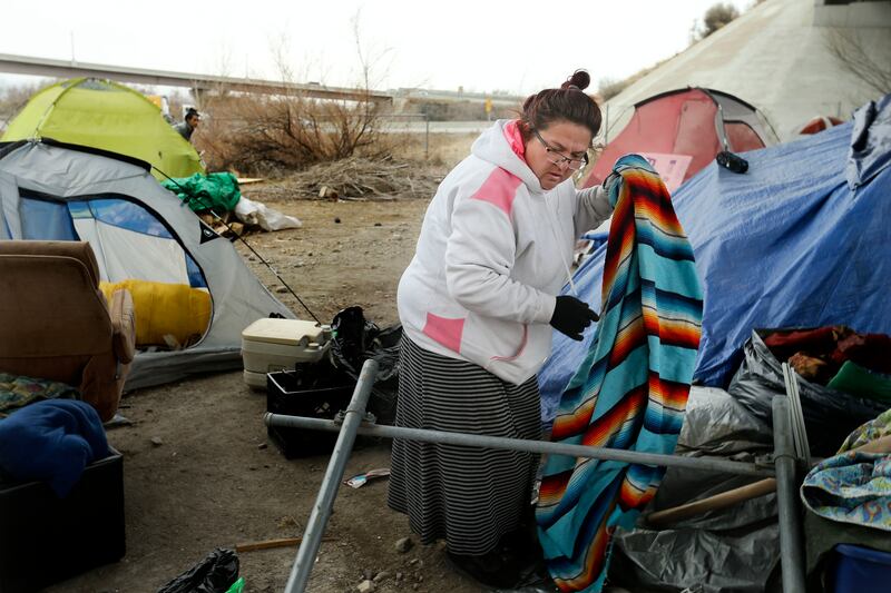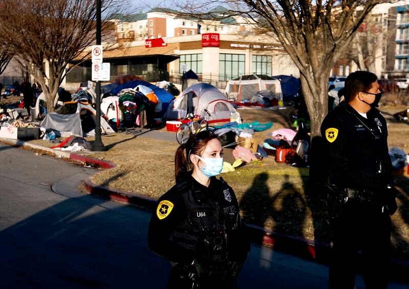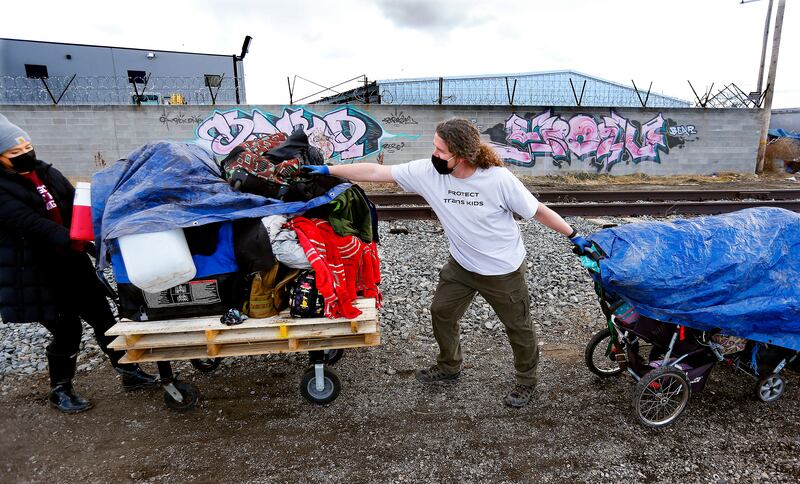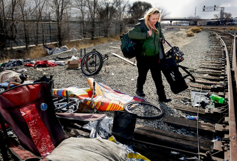 “In December, when Union Pacific first learned about the camp, they sent their very small police squad through here, and they tried to tell people to leave,” said Michelle Hoon, who oversees the city’s Homeless Response Team. “Understanding this is a big camp and more of an organized thing, we reached out to Union Pacific to talk through what our winter plan was and wait for more possibilities for shelters to open up for people.”