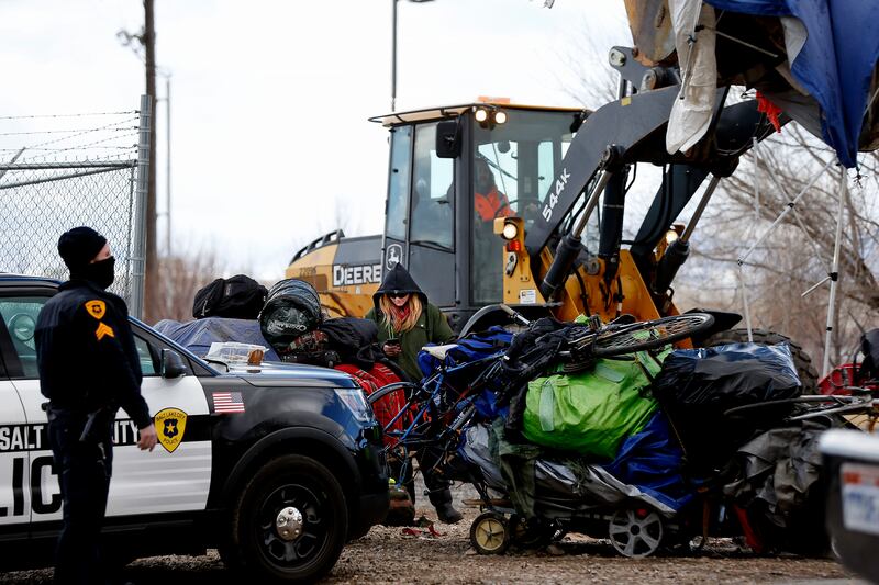 Wright and her boyfriend, who goes by Sasquatch, woke up on Feb. 4 to the sound of heavy equipment and county officials asking them to vacate the camp they’d set up with several other couples next to a set of dead railroad tracks a stone’s throw from FrontRunner tracks.