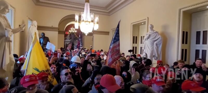“I have video of it,” he said on the night of the incursion, describing in detail seeing the flash of the gun, the bullet strike Babbitt, and Babbitt’s reaction as she died on the floor. “I am hesitant to post it. ... It’s something I have to take in. I hope that people get a grasp of that situation. Whoever shot her, maybe should be held accountable. I guess that’s up to the law to decide.”