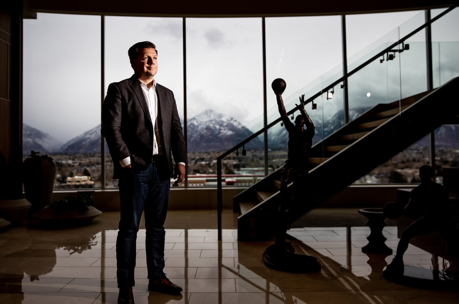 Things were unusually quiet on a Thursday afternoon at the headquarters of one Utah’s most recognizable businesses where bronze statues of Karl Malone and John Stockton are silhouetted against the cloudy, snow-covered Wasatch Mountains.