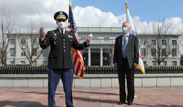 “I hoped to be involved in cardiac surgery training in the Army, the enhancement of the Army Medical Corps, potentially even some degree of recruiting physicians,” Mitchell said, standing in the courtyard of the Utah Capitol complex. “And I hope I can give back something that I’ve learned in the civilian world to my partners in the operating room in the Army.”