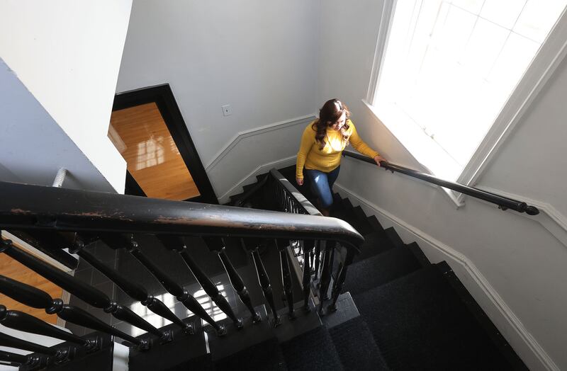 Her older daughter attends online school from inside First Unitarian Church of Salt Lake City, while Chavez teaches the younger girl to name toys and other items in both English and Spanish.