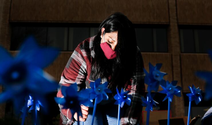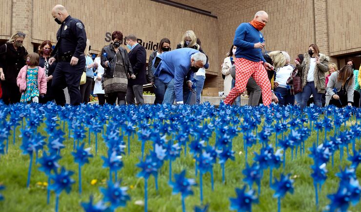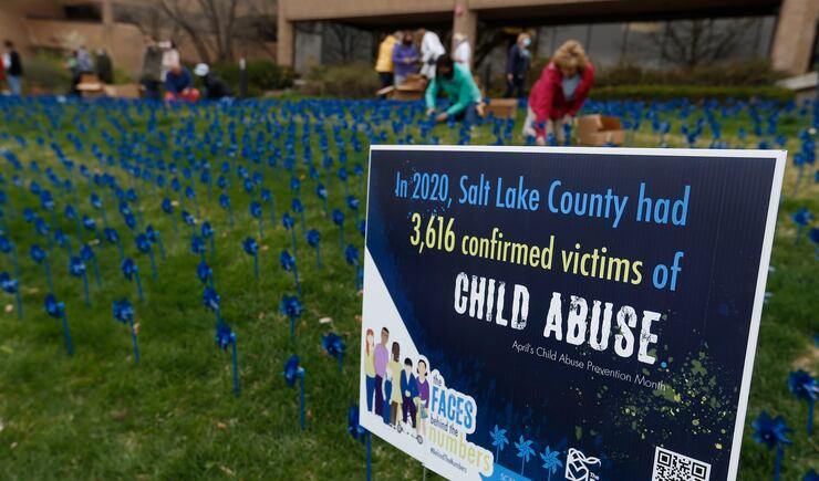 She joined Salt Lake County Mayor Jenny Wilson, District Attorney Sim Gill and others in planting blue pinwheels on the lawn of the Salt Lake County Government Center to call attention to the issue. April is nationally recognized as child abuse awareness month.