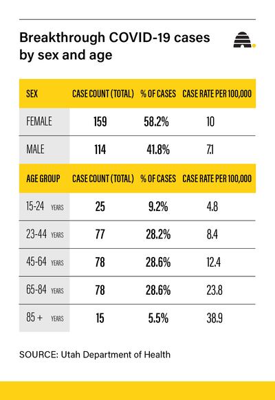 More women than men have contracted the coronavirus after being fully vaccinated in Utah as well as the rest of the country, and less than half of the nation’s breakthrough cases, 46%, have been in people 60 and older, the CDC reported.
