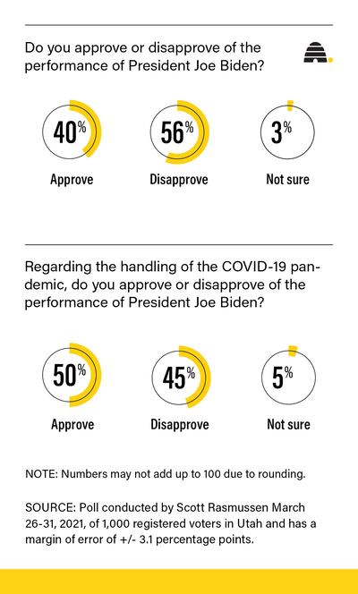 Biden fares better among Utahns overall in his handling of the COVD-19 pandemic, though that, too, splits along party lines.