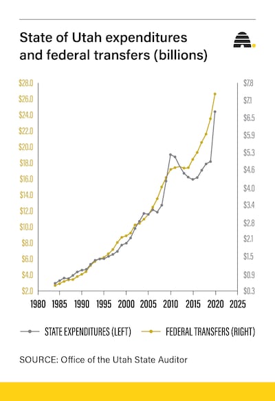 In the year of the COVID-19 pandemic, the state of Utah spent more than $6.7 billion in federal funds — a number that has State Auditor John Dougall concerned about future reliance on federal subsidies.