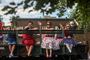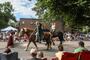Because of firework restrictions, the only cannon to fire at the park's all-day celebration shot taffy into the air for youngsters to retrieve. Revelers linked arms for do-si-dos in an old-time dance lesson and competed in a watermelon