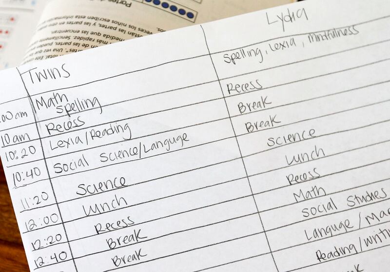 Last year, the couple’s 6-year-old twins, Gwendolyn and Vivian, participated in kindergarten online. Their eldest daughter, Lydia, 10, also started the school year online but the multiple hours of screen time each day took their toll.