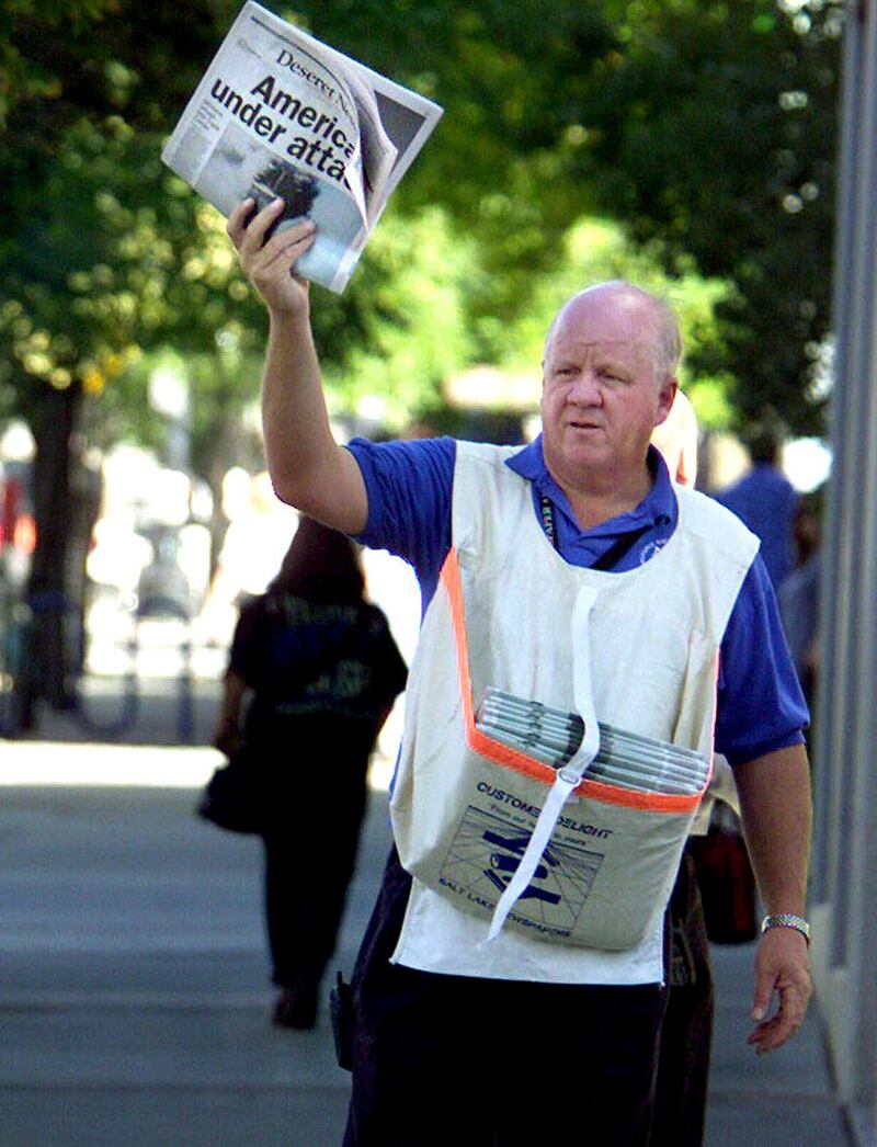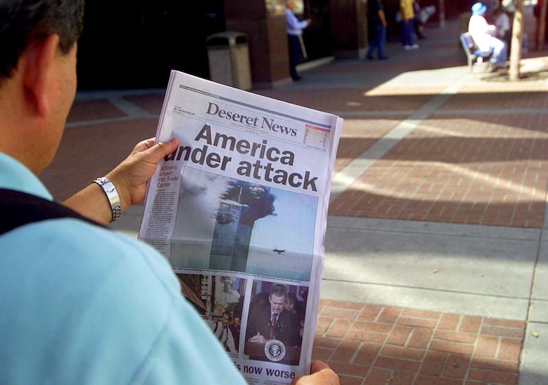 The Deseret News was still an evening newspaper on Sept. 11, 2001, and the staff was readying for the day in the early morning hours when the first plane struck the World Trade Center in New York City. Ravell Call, who was the photo editor that day, remembers seeing on a grainy television at the business editor’s desk what they believed was a horrible accident.