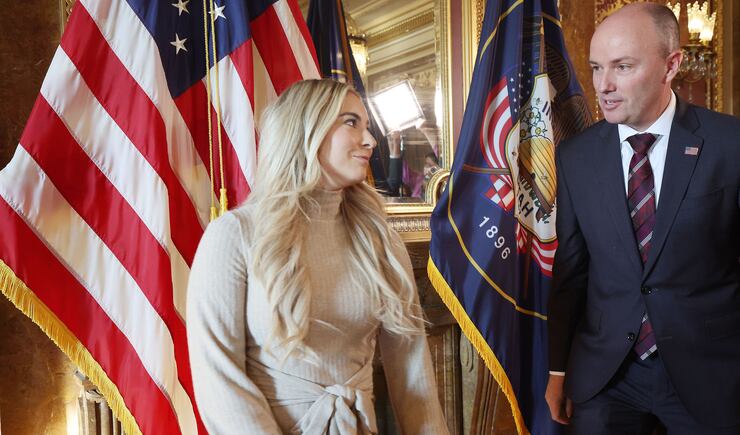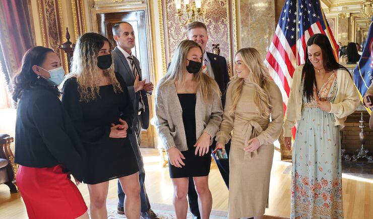Gov. Spencer Cox honored five athletes with Utah ties who competed last year in the 2020 Tokyo Games. Gymnasts MyKayla Skinner, Grace McCallum, Kara Eaker and Amelie Morgan, and swimmer Rhyan White met briefly with Cox before being recognized by the Utah Legislature on Wednesday.