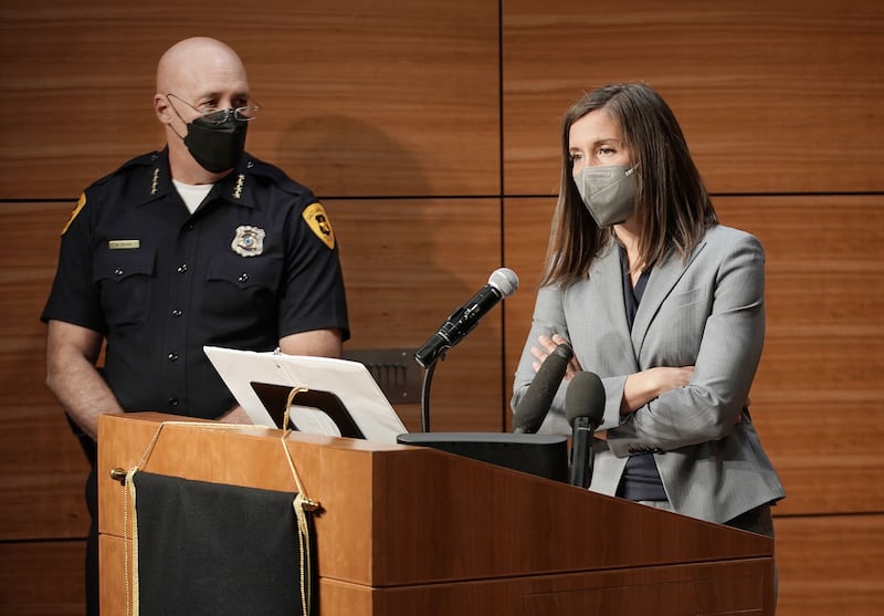 Mendenhall and Police Chief Mike Brown released the city's latest crime statistics on Wednesday. Brown said from the first week of 2021 through Dec. 26, overall crime in Salt Lake was down 5.4% from the year before.