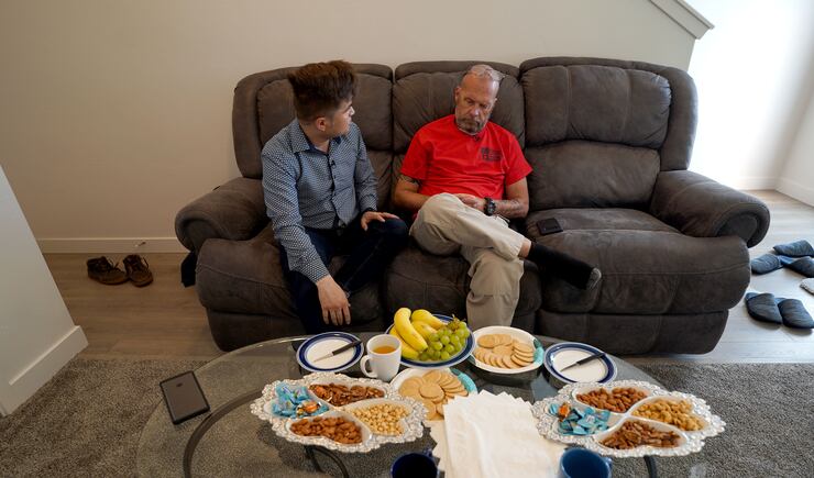 Hoover’s father, Darin, keeps in touch and can occasionally be seen sitting cross-legged on the floor of the apartment, eating chicken shawarma and rice below his son’s shrine.