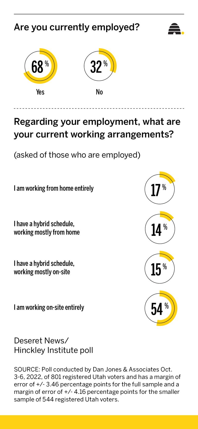 A new Deseret News/Hinckley Institute of Politics poll checked in with Utahns to find out where they’re spending their work days.